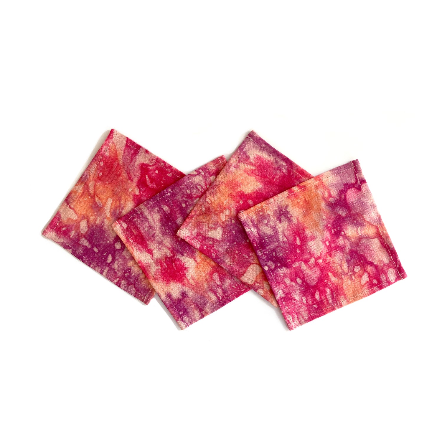 Hand Dyed Gold Yellow Napkins, Abstract Pattern, Set of Four