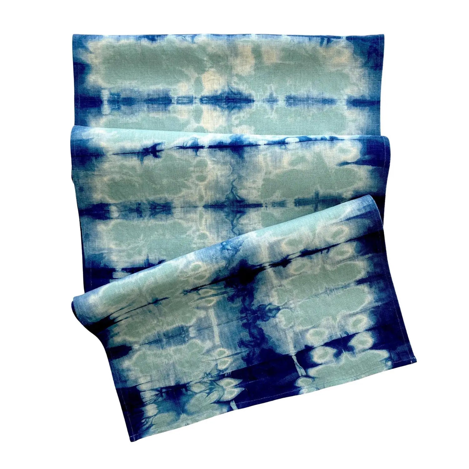 Hand Dyed Jade Green Table Runner, Abstract Pattern