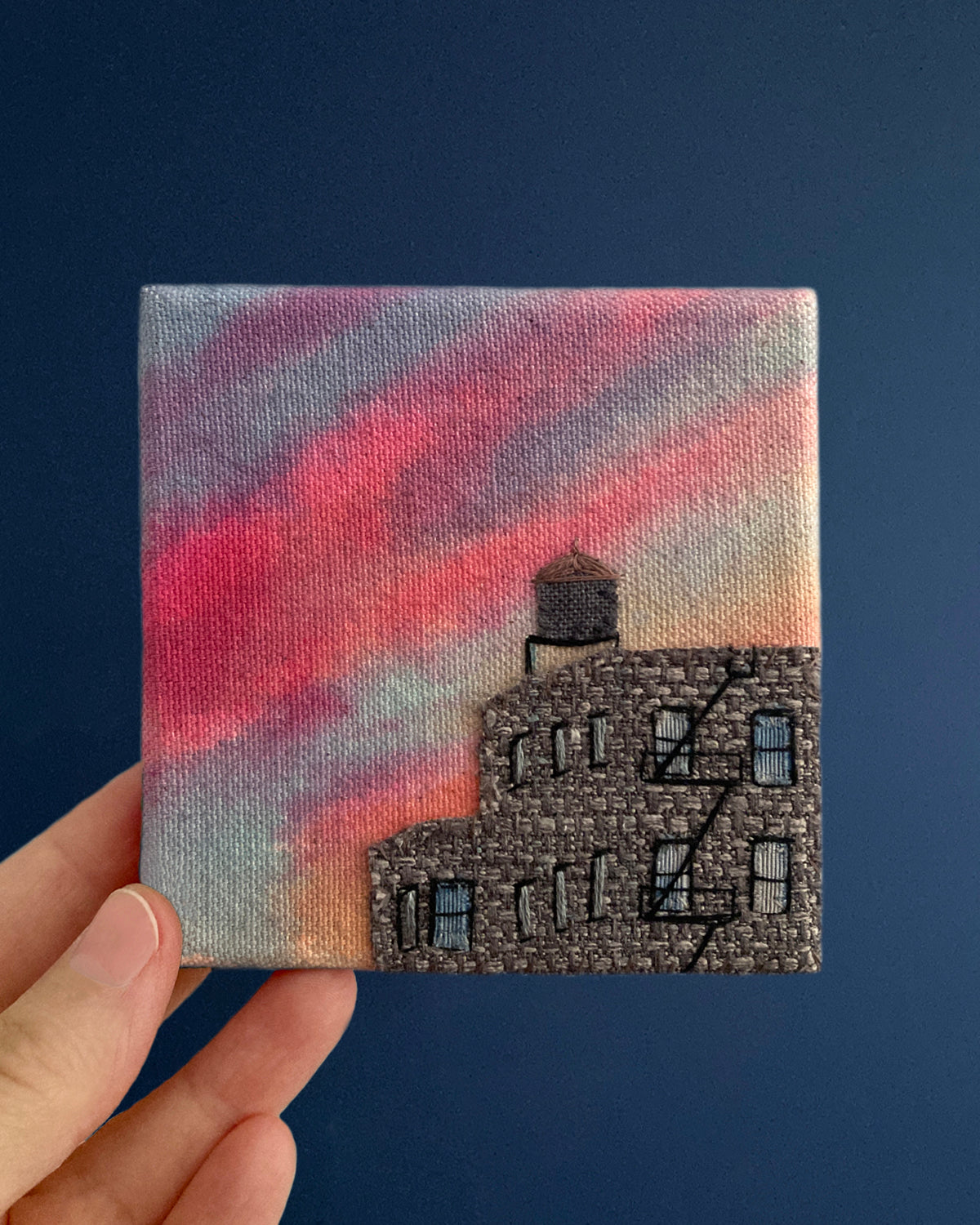 A limited series of hand-embroidered canvases, reimagining the city in textile form.