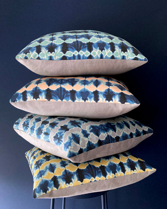 Water Tower Silhouette, Hand Dyed and Embroidered Canvas, 4 x 4 inches
