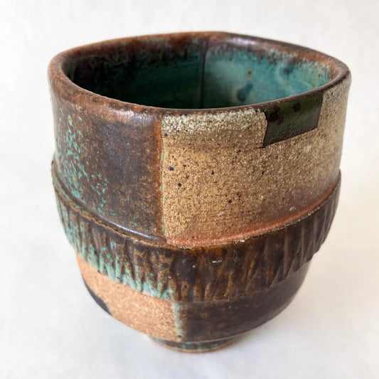 Studio Art Pottery Vase, Green, Brown, Tan, Hand-crafted, Postmodern
