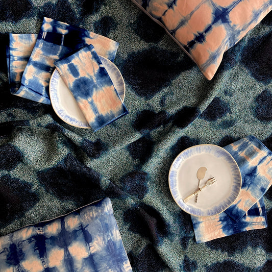 Rose & Indigo Wave Cocktail Napkins, Set of Four