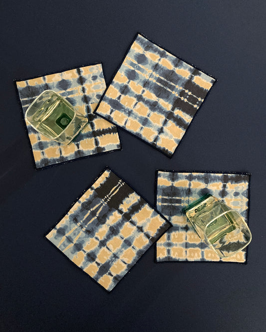 Gold & Indigo Ripple Cocktail Napkins, Set of Four