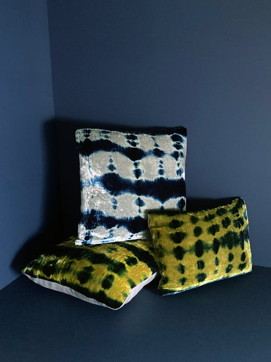 Hand Dyed Gold Throw Pillow, Ikat Abstract Pattern, 18 x 18