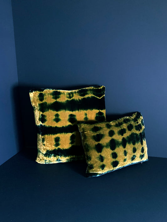 Hand Dyed Gold Throw Pillow, Inkblot Abstract Pattern, 12 x 16