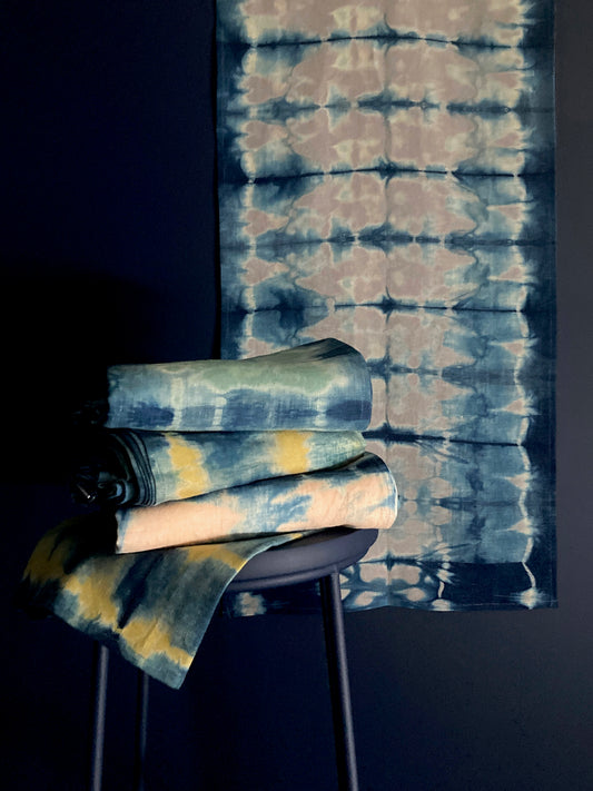 Hand Dyed Gold Yellow Table Runner, Abstract Pattern
