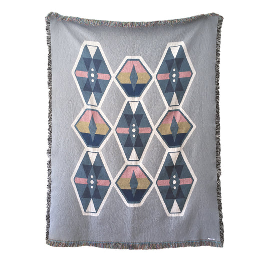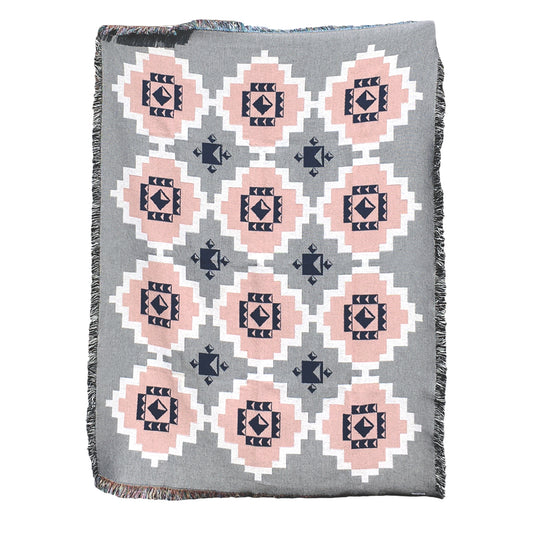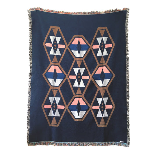 Geometric Navy & Pink Throw Blanket, Sixteen Pattern, 54 x 72