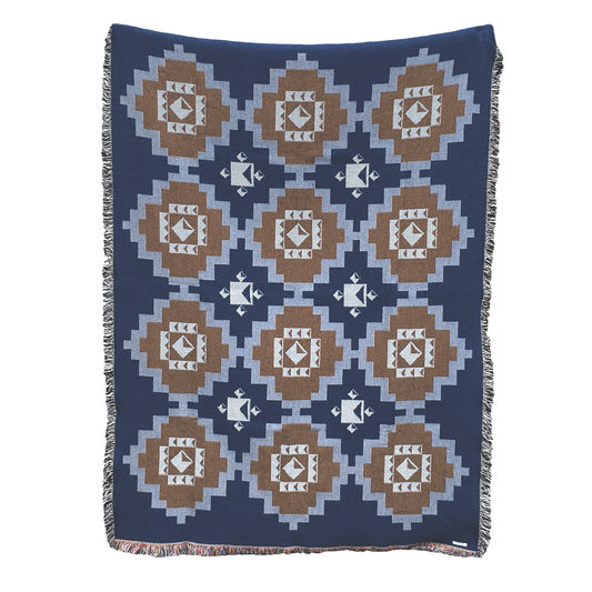 Geometric Navy & Ochre Throw Blanket, Twilight Geo Pattern, 54 x 72